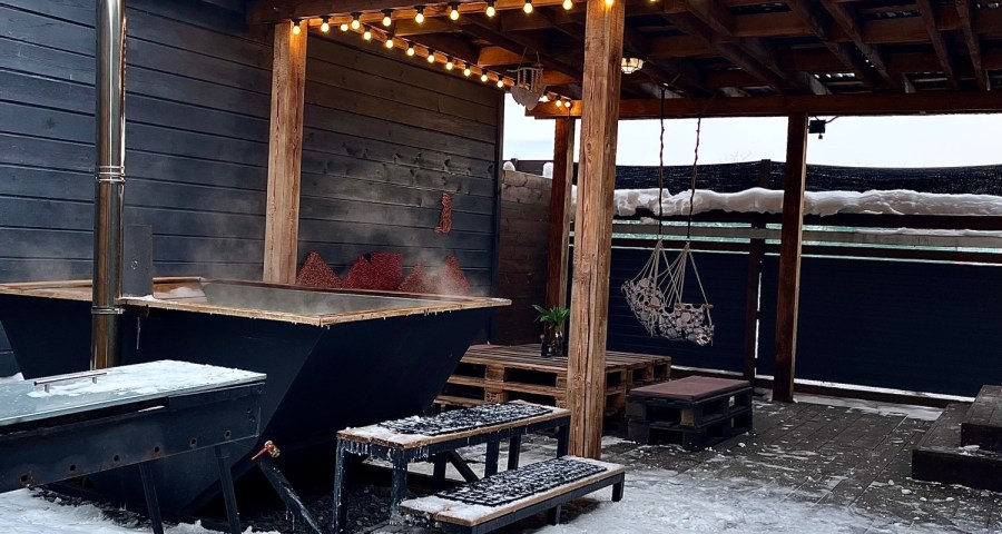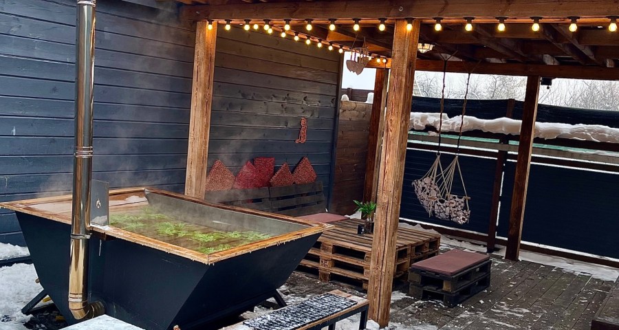 Обязательно попробуйте наш горячий чан под открытым небом, Вы останетесь довольны!